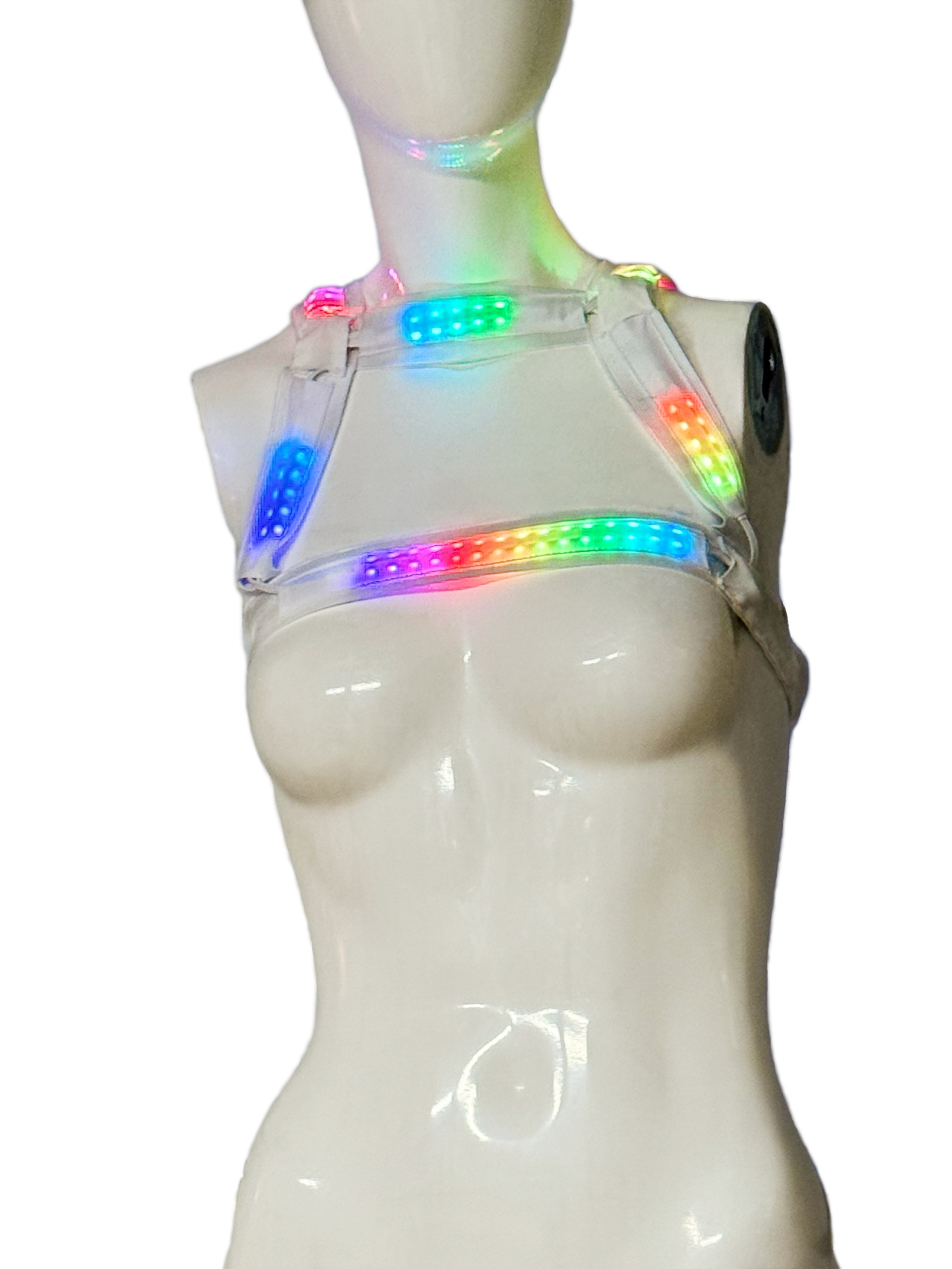 Crafted for both comfort and impact, this lightweight yet durable harness top seamlessly contours to your body, allowing unrestricted movement while ensuring you stand out in any crowd.